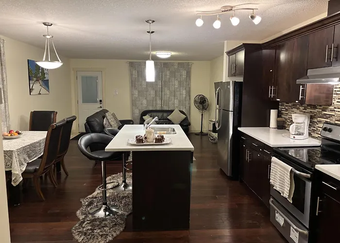 La Modern Vacation Home Near West Edmonton Mall, Transit Center & Lrt - 3Br dispone di una cucina completamente attrezzata completa di una lavastoviglie e un forno. Gli ospiti possono cenare al ristorante Burger Baron, che si trova a 550 metri. Grazie alla fermata dell'autobus 118 Ave & 133 Street, situata a breve distanza dal luogo, gli ospiti possono facilmente esplorare Edmonton.